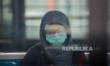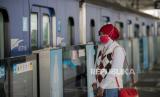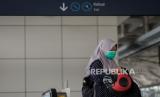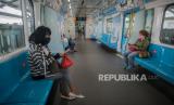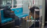 REPUBLIKA.CO.ID, JAKARTA -- Penumpang menggunakan masker saat menaiki kereta Moda Raya Terpadu (MRT) di Stasiun MRT Lebak Bulus, Jakarta Selatan, Senin (6/4).