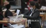 Petugas menghitung suara pemilihan Wakil Gubernur DKI Jakarta dengan calon dari Partai Gerindra Ahmad Riza Patria dan calon dari PKS Nurmansyah di Gedung DPRD DKI Jakarta di Jakarta, Senin (6/4/2020). Pada pemilihan Wakil Gubernur DKI Jakarta sisa masa jabatan 2017-2022 oleh DPRD DKI Jakarta, politisi Gerindra Ahmad Riza Patria memperoleh 81 suara sedangkan politisi PKS Nurmansyah memperoleh 17 suara sedangkan dua suara tidak sah (FOTO : ANTARAFOTO)