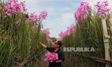 Naim (57) seorang petani anggrek memetik anggrek jenis Panda Douglas dikebun anggrek miliknya di Pamulang, Tangerang Selatan, Banten, Senin (6/4/2020). Merebaknya pandemi COVID-19 di tanah air membuat Naim tidak dapat menjual Anggrek hasi panennya diakarenakan sudah tidak adanya permintaan dari pasar kembang disejumlah daerah seperti dari Rawa Belong, Semarang, dan Surabaya, Naim membiarkan ratusan ribu batang anggreknya membusuk dipohon (FOTO : ANTARA/Muhammad Iqbal/)