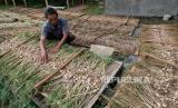 Petani menjemur bawang putih jenis Lumbu Ijo yang baru dipanen di Kwadungan, Kledung, Temanggung, Jawa Tengah, Senin (6/4/2020). Petani menjual bawang putih untuk konsumsi dengan harga Rp12 ribu-Rp14 ribu per kilogram sedangkan bibit bawang putih Rp50 ribu-Rp60 ribu per kilogram (FOTO : ANTARA/anis efizudin)