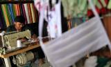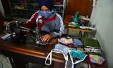 Perajin menjahit kain masker industri rumahan di Kecamatan Baruga, Kendari, Sulawesi Tenggara, Senin (6/4/2020). Sejak merebaknya wabah virus COVID-19 membuat penjahit pakaian beralih membuat masker kain untuk sementara waktu akibat meningkatnya permintaan dalam sehari bisa menjual masker hingga 250 lembar masker sementara penjualan melayani wilayah kota Kendari dan beberapa kabupaten di Sulawesi Tenggara. (FOTO : ANTARA/Jojon)