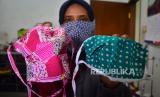 Relawan menunjukkan masker hasil produksinya di Gondangmanis, Kudus, Jawa Tengah, Senin (6/4/2020). Masker yang diproduksi dari bahan kain perca tersebut akan didistribusikan secara gratis kepada masyarakat yang membutuhkan guna mencegah penyebaran COVID-19 (FOTO : ANTARA/Yusuf Nugroho)