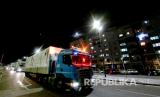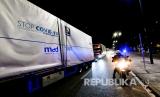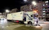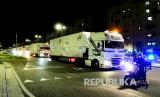 REPUBLIKA.CO.ID, NAPLES -- Sejumlah truk membawa rumah sakit modular untuk orang-orang yang terkena virus Corona saat tiba di Ospedale del Mare, Naples, Italia, Senin (6/4).
