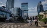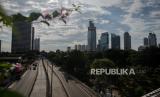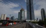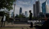 Suasana jalan yang lengang di kawasan bisnis di Jalan Kuningan, Jakarta, Selasa (7/4). Kementerian Kesehatan Terawan Agus Putranto menyetujui status Pembatasan Sosial Berskala Besar (PSBB) di Provinsi DKI Jakarta diantaranya pembatasan moda transportasi, pembatasan kegiatan keagamaan, peliburan sekolah dan tempat kerja, pembatasan kegiatan sosial dan budaya, serta kegiatan ditempat fasilitas umum (FOTO : Republika/Thoudy Badai)