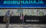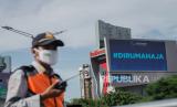 REPUBLIKA.CO.ID, JAKARTA -- Papan reklame digital berisi imbauan dirumahaja terpasang di kawasan Sudirman, Jalan Jendral Sudirman, Jakarta, Rabu (8/4).