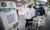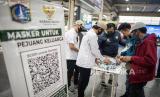 REPUBLIKA.CO.ID, JAKARTA -- Badan Amil Zakat Nasional (BAZNAS) memberikan masker gratis kepada calon penumpang KRL di Stasiun Manggarai, Jakarta, Rabu (8/4). Kegiatan tersebut dilakukan sebagai bentuk kepedulian bagi penumpang KRL untuk mengantisipasi penyebaran virus COVID-19 dengan menggunakan masker di tempat umum.