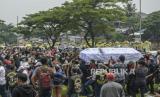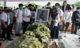 Jenazah dibawa menuju pemakaman setelah ibadat pelepasan jenazah di GPIB Sumber Kasih, Lebak Bulus, Jakarta Selatan.