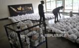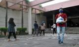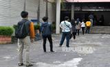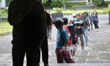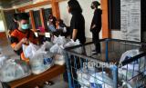 REPUBLIKA.CO.ID, YOGYAKARTA -- Mahasiswa antre mengambil paket sembako di Gelanggang Mahasiswa UGM, Yogyakarta, Jumat (10/4).