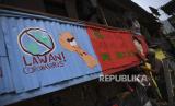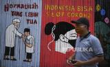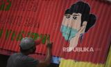 REPUBLIKA.CO.ID, JAKARTA -- Seorang warga menyelesaikan pembuatan mural ajakan melawan penyebaran virus corona atau COVID-19 di Kalipasir, Jakarta, Jumat (10/4/2020).