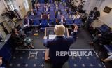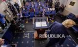Jaga Jarak di Ruangan Konferensi Pers Gedung Putih