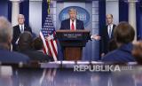 Presiden Donald Trump berbicara tentang virus corona di Ruang Sidang James Brady di Gedung Putih, Washington, Kamis (9/4) waktu setempat. (FOTO : AP/Andrew Harnik)