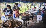 REPUBLIKA.CO.ID, JAKARTA -- Petugas Taruna Siaga Bencana (Tagana) memasak makanan di Dapur Umum Kementerian Sosial Peduli Dampak COVID-19 di Kompleks Gedung Konvensi Taman Makam Pahlawan Nasional Utama Kalibata, Jakarta, Sabtu (11/4/2020).