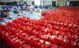 Paket nasi bungkus yang siap untuk didistribusikan di Dapur Umum Kementerian Sosial Peduli Dampak COVID-19, di Kompleks Gedung Konvensi Taman Makam Pahlawan Nasional Utama Kalibata, Jakarta, Sabtu (11/4/2020). (FOTO : Antara/Aprillio Akbar)
