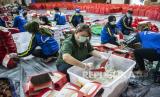 Dalam sehari, petugas menyiapkan hingga 9.000 paket nasi bungkus dan 6.000 sembako untuk didistribusikan ke warga DKI Jakarta yang terdampak pandemi COVID-19.