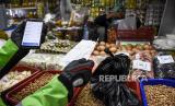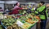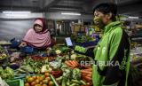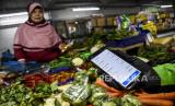 REPUBLIKA.CO.ID, BANDUNG -- Layanan belanja secara daring menjadi pilihan bagi masyarakat untuk membeli sejumlah kebutuhan pokok di Pasar Kosambi, Bandung, Ahad (12/4). Layanan jual beli kebutuhan pokok di pasar tradisional secara daring diharapkan dapat mempermudah masyarakat untuk mendapatkan kebutuhan pokok tanpa harus keluar rumah sekaligus mendukung upaya memutus mata rantai penyabaran virus Corona (Covid-19) melalui jaga jarak fisik dan sosial.