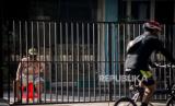 Warga mengendarai sepeda saat pemberlakuan pembatasan sosial berskala besar (PSBB) untuk menekan penyebaran COVID-19 di kawasan Blok M, Jakarta, Ahad (12/4). Memasuki hari ketiga pemberlakuan pembatasan sosial berskala besar (PSBB) sejumlah ruas jalan di Jakarta mulai sepi dari kendaraan roda dua dan empat (FOTO : Republika/Thoudy Badai)