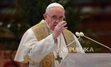 Paus Fransiskus menyampaikan pesannya saat memimpin Misa Minggu Paskah yang dilakukan secara tertutup di Basilika Santo Petrus, Vatikan, Ahad (12/4). Misa minggu paskah diadakan secara tertutup untuk mencegah penyebaran virus COVID-19. (FOTO : VATICAN MEDIA)