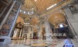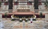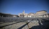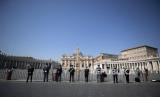 REPUBLIKA.CO.ID, VATIKAN -- Lapangan Santo Petrus Vatikan terlihat kosong saat berlangsungnya Misa Minggu Paskah yang dilakukan secara tertutup di Basilika Santo Petrus, Vatikan, Ahad (12/4). Kondisi ini tak seperti tahun sebelumnya dimana lapangan Santo Petrus Vatikan selalu dipenuhi ribuan jamaah saat Misa Minggu Paskah. Pelaksanaan Misa Minggu Paskah diadakan secara tertutup untuk mencegah penyebaran virus COVID-19. Paus Fransiskus memimpin langsung jalannya Misa Minggu Paskah ini.
