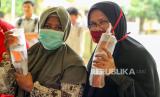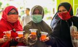 Sejumlah guru menunjukkan minuman herbal usai diracik dan diberi kemasan di SMAN-1 Lhokseumawe, Aceh, Senin (13/4). Pembuatan 5000 gelas minuman herbal berbahan rempah-rempah yaitu jahe, kunyit, temulawak, kayu manis, sereh, dan gula aren untuk dibagikan kepada masyarakat itu merupakan aksi sosial pelajar dan guru untuk meningkatkan kekebalan dan imunitas tubuh masyarakat di tengah wabah COVID-19 (FOTO : ANTARA FOTO)