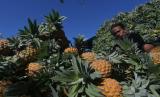 Pedagang melakukan bongkar muat buah nanas di Palu, Sulawesi Tengah, Ahad (12/4/2020). Menurut pedagang selama masa pandemik COVID-19 permintaan masyarakat terhadap berbagai jenis buah-buahan termasuk buah nanas yang dijual Rp5.000 hingga Rp10.000 itu meningkat. (FOTO : ANTARA/Mohamad Hamzah)