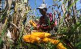 Petani memanen jagung di Desa Polagan, Pamekasan, Jawa Timur, Senin (13/4/2020). Menjelang musim panen raya harga jagung di daerah itu turun dari Rp4.500 menjadi Rp3.500 per kg. (FOTO : ANTARA/Saiful Bahri)