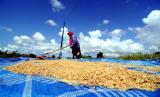Petani menjemur gabah di Desa Dasok, Pamekasan, Jawa Timur, Senin (13/4/2020). Kementerian Pertanian memperkirakan produksi gabah dibulan April 2020 diperkirakan akan surplus sekitar 2,53 juta ton. (FOTO : ANTARA/Saiful Bahri)