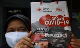 Warga menerima bantuan paket perlengkapan Perilaku Hidup Bersih dan Sehat (PHBS) dari Palang Merah Indonesia (PMI) di kawasan Cempaka Putih Barat, Jakarta, Senin (13/4/2020). PMI Pusat secara bertahap akan membagikan 500 ribu bantuan paket PHBS dan melakukan penyemprotan disinfektan untuk membantu masyarakat yang terdampak COVID-19 agar bisa menerapkan hidup bersih dan sehat selama pandemi (FOTO : Antara/M Risyal Hidayat)