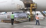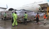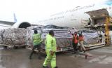 30 ton bantuan berupa lat-alat pelindung diri (APD) yang didatangkan RGE Group bersama Tanoto Foundation tiba di Bandara Soetta, Tangerang, Senin (13/4). (FOTO : Dok. Istimewa)