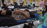 Sejumlah personel Polda Banten mendonorkan darahnya di Mapolda Banten, di Serang, Banten, Senin (13/4/2020). Kegiatan yang diikuti 321 personel tersebut merupakan kerja sama PMI dan Polda Banten untuk mengatasi kelangkaan stok darah dampak pandemi COVID-19 (FOTO : Antara/Asep Fathulrahman)