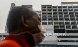 Warga melintas di depan gedung yang terpasang spanduk bertuliskan penolakan atas penggunaan rumah sakit darurat COVID-19 di Lippo Plaza, Mampang, Jakarta, Ahad (5/4/2020). Aksi tersebut sebagai bentuk kekhawatiran penghuni apartemen Nine Residence yang membuat mereka berada dalam zona merah COVID-19. (FOTO : ANTARA/M Risyal Hidayat)
