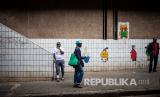 Sejumlah orang berada di jalanan di luar Pasar Mai Mai meskipun di berlakukannya lockdown pada hari ke-18, Johannesburg, Afrika Selatan, Senin (13/4). Lockdown atau pembatasan nasional yang dinyatakan oleh Presiden Cyril Ramaphosa pada tanggal 23 Maret 2020 lalu telah diperpanjang 14 hari dan akan selesai 30 April 2020. (FOTO : EPA-EFE/KIM LUDBROOK)