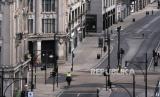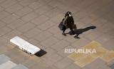 Pejalan kaki di Oxford Street yang kosong, London Pusat, Senin (13/4). Inggris akan memperpanjang lockdown hingga 7 Mei nanti. Data setempat menunjukkan 11 ribu lebih warga Inggris meninggal akibat Covid-19. (FOTO : EPA)