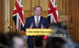 Menteri Luar Negeri Inggris Dominic Raab mengadakan konferensi pers digital Covid-19 di Downing Street di London, Inggris, (13/4). (FOTO : 10 DOWNING STREET)