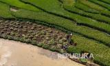 REPUBLIKA.CO.ID, SEMARANG -- Buruh tani memanen padi di areal persawahan Desa Kawengen, Ungaran Timur, Kabupaten Semarang, Jawa Tengah, Selasa (14/4/2020).