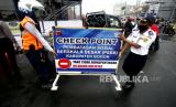 Petugas Dishub Kabupaten Bogor mempersiapkan rambu-rambu jelang diberlakukan Pembatasan Sosial Berskala Besar (PSBB) di Jalan Raya Bogor, Cibinong, Bogor, Jawa Barat, Selasa (14/4/2020). Untuk mecegah meluasnya penyebaran virus Corona (COVID-19), Pemerintah Kabupaten Bogor mengajak seluruh lapisan masyarakat untuk menaati peraturan-peraturan di saat diberlakukanya PSBB di Kabupaten Bogor pada Rabu (15/4/2020) (FOTO : Antara/Yulius Satria Wijaya)