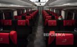 Seorang pelancong duduk dalam kereta ekspres kosong menuju Bandara Internasional Narita di Tokyo, Rabu (1/4). Foto AP / Jae C (FOTO : AP / Jae C. Hong)