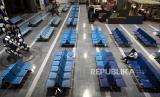 Seorang pekerja membersihkan pegangan troli di Bandara Internasional Narita di Narita, Tokyo, Kamis (2/4). AP Foto / Jae C (FOTO : AP / Jae C. Hong)