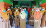 Sejumlah perawat yang bertugas di Puskesmas Dumai Kota memakai pita hitam sebagai tanda ikut berkabung terhadap rekannya yang meninggal dunia akibat terinfeksi COVID-19 di Kota Dumai, Riau, Selasa (14/4/2020). Perawat di Kota Dumai memakai pita hitam pada baju dinasnya sebagai tanda ikut berkabung terhadap 10 rekannya yang meninggal dunia terinfeksi COVID-19 di saat bertugas di sejumlah rumah sakit di tanah air (FOTO : Aswaddy Hamid/ANTARA FOTO )