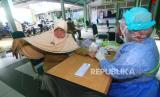 Seorang ASN (Aparatur Sipil Negara) Pemerintah Kota Pontianak menjalani rapid test atau pemeriksaan cepat COVID-19, di Kantor Dinas Kesehatan Kota Pontianak, Kalimantan Barat, Selasa (14/4/2020). Rapid test dilakukan terhadap jajaran pejabat organisasi perangkat daerah, camat, dan lurah di Pemerintah Kota Pontianak yang sehari-harinya berinteraksi langsung dengan masyarakat setempat (FOTO : JESSICA HELENA WUYSANG/ANTARA FOTO)