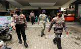 Aparat keamanan dari kepolisian dan Satpol PP melaksanakan patroli pencegahan penularan virus Corona (COVID-19) di Banda Aceh, Aceh, Selasa (14/4/2020). Satpol PP bersama kepolisian secara rutin melaksanakan patroli dan sosialisasi penggunaan masker dan jaga jarak sosial sebagai upaya mencegah penularan COVID-19 (FOTO : Antara/Irwansyah Putra)