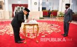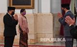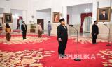 REPUBLIKA.CO.ID, JAKARTA -- Presiden Joko Widodo mengenakan masker saat melantik sejumlah pejabat negara di Istana Merdeka, Jakarta, Rabu (15/4/2020).