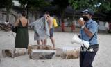 Petugas meminta wisatawan untuk meninggalkan kawasan pantai saat melakukan patroli di Pantai Kedonganan, Badung, Bali, Rabu (15/4/2020). Meskipun objek wisata tersebut telah ditutup sebagai upaya pencegahan penyebaran COVID-19, namun sejumlah wisatawan masih terpantau mengunjungi kawasan pantai dengan melanggar portal penutup maupun tanda pemberitahuan yang telah dipasang (FOTO : FIKRI YUSUF/ANTARA FOTO)