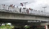 Sejumlah remaja berkerumun menyaksikan teman mereka melompat ke sungai di Jembatan Purus, Padang, meski telah diserukan imbauan physical distancing akibat pandemi COVID-19, Sumatera Barat, Rabu (15/4/2020). Gubernur Sumbar Irwan Prayitno memperpanjang status tanggap darurat bencana sabah COVID-19 mulai Rabu (15/4/2020) sampai 29 Mei 2020 sekaligus pembatasan selektif orang masuk ke provinsi itu karena semakin meningkatnya kasus positif corona (FOTO : Iggoy el Fitra/ANTARA FOTO)