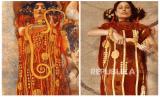 Foto kombo salinan fragmen Medicine karya Gustav Klimt (kiri) dan kreasi Anastasia Veras untuk halaman Facebook Izoizolyacia di San Francisco, Amerika Serikat, Kamis (9/4). (FOTO : Anastasia Vera via AP )