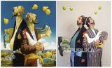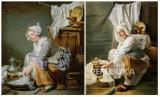 Foto kombo salinan karya seni Washerwoman dari Jean-Baptiste (kiri) dan kreasi Natalya Altypina untuk halaman Facebook Izoizolyacia di Kherson, Ukraina, Selasa (7/4). (FOTO : Natalya Altypina via AP )