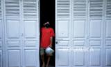 REPUBLIKA.CO.ID, MAKASSAR -- Warga menggunakan masker saat berada di luar rumahnya di Makassar, Sulawesi Selatan, Kamis (16/4/2020).