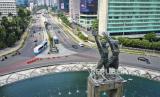 REPUBLIKA.CO.ID, JAKARTA -- Penerapan PSBB di Jakarta memasuki hari keenam pada Kamis (16/4). Kondisi lalu lintas di jalan protokol terpantau sepi.