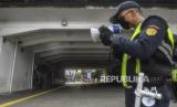 Petugas keamanan MRT memberikan imbauan kepada masyarakat di Jalan Kendal yang sepi di Jakarta, Senin (6/4/2020) pukul 08.00 WIB (FOTO : ANTARA FOTO/MUHAMMAD ADIMAJA)
