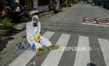 Petugas Palang Merah Indonesia (PMI) menyemprotkan cairan disinfektan di lingkungan asrama Sekolah Tinggi Teknologi (STT) Bethel di kawasan Petamburan, Jakarta, Jumat (17/4). Sebanyak 34 mahasiswa yang menghuni asrama Sekolah Sekolah Tinggi Teknologi (STT) Bethel terkonfirmasi positif virus Corona (COVID-19) dan langsung dievakuasi ke Rumah Sakit Darurat Corona Wisma Atlet Kemayoran (FOTO : Republika/Putra M. Akbar)