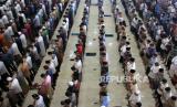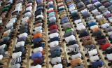 Sejumlah umat Islam melaksanakan shalat Jumat di Masjid Agung Baitul Makmur, Meulaboh, Aceh Barat, Aceh, Jumat (10/4). Meskipun Majelis Ulama Indonesia (MUI) telah mengeluarkan fatwa tentang tidak wajib melaksanakan shalat jumat dan bisa digantikan shalat zuhur di rumah, namun sebagian masjid di Aceh masih menggelar shalat Jumat tanpa menerapkan “physical distancing” (pembatasan sosial atau menjaga jarak) (FOTO : ANTARA/Syifa Yulinnas)
